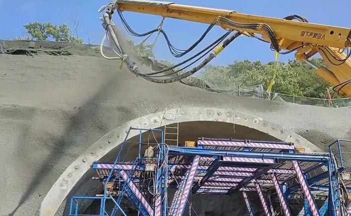 大型混凝土濕噴臺車是智能化濕噴機械,又稱為濕噴機械手、機械臂噴漿機,采用無線遙控操作,每小時噴射混凝土量30立方,具有施工機械化程度高、安全性強、工作效率高、覆蓋范圍廣、回彈率低、操作靈活方便等特點。大型混凝土濕噴臺車廣泛應用于鐵路、公路隧道、邊坡、水利、水電的隧洞和涵洞、地鐵以及各種建筑工程等濕噴混凝土作業。