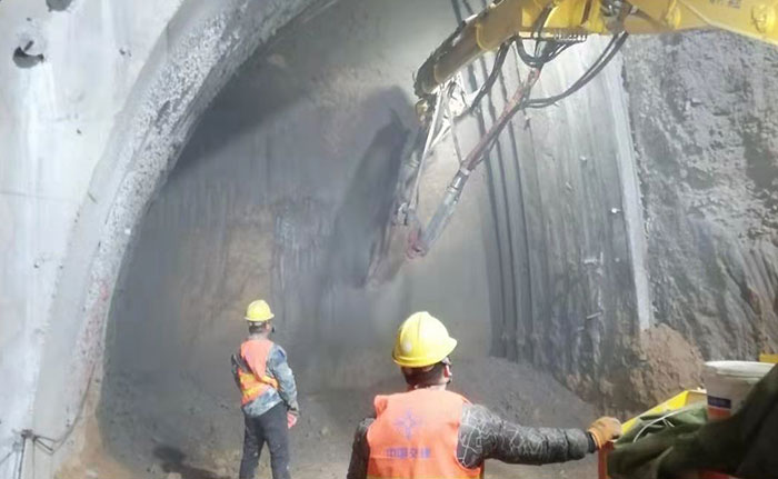 在鐵路公路隧道、深基坑和道路邊坡防護等工程施工中,廣泛采用噴射混凝土的支護方法。噴射混凝土支護已成為常規(guī)巖石支護的主要手段,對穩(wěn)定圍巖起著很大作用。濕噴混凝土在礦山和隧道施工和安全支護中有很多的優(yōu)越性,進一步改進了噴射材料、設(shè)備和施工工藝之后,濕噴混凝土在現(xiàn)代礦山和隧道地下工程中廣泛應(yīng)用。